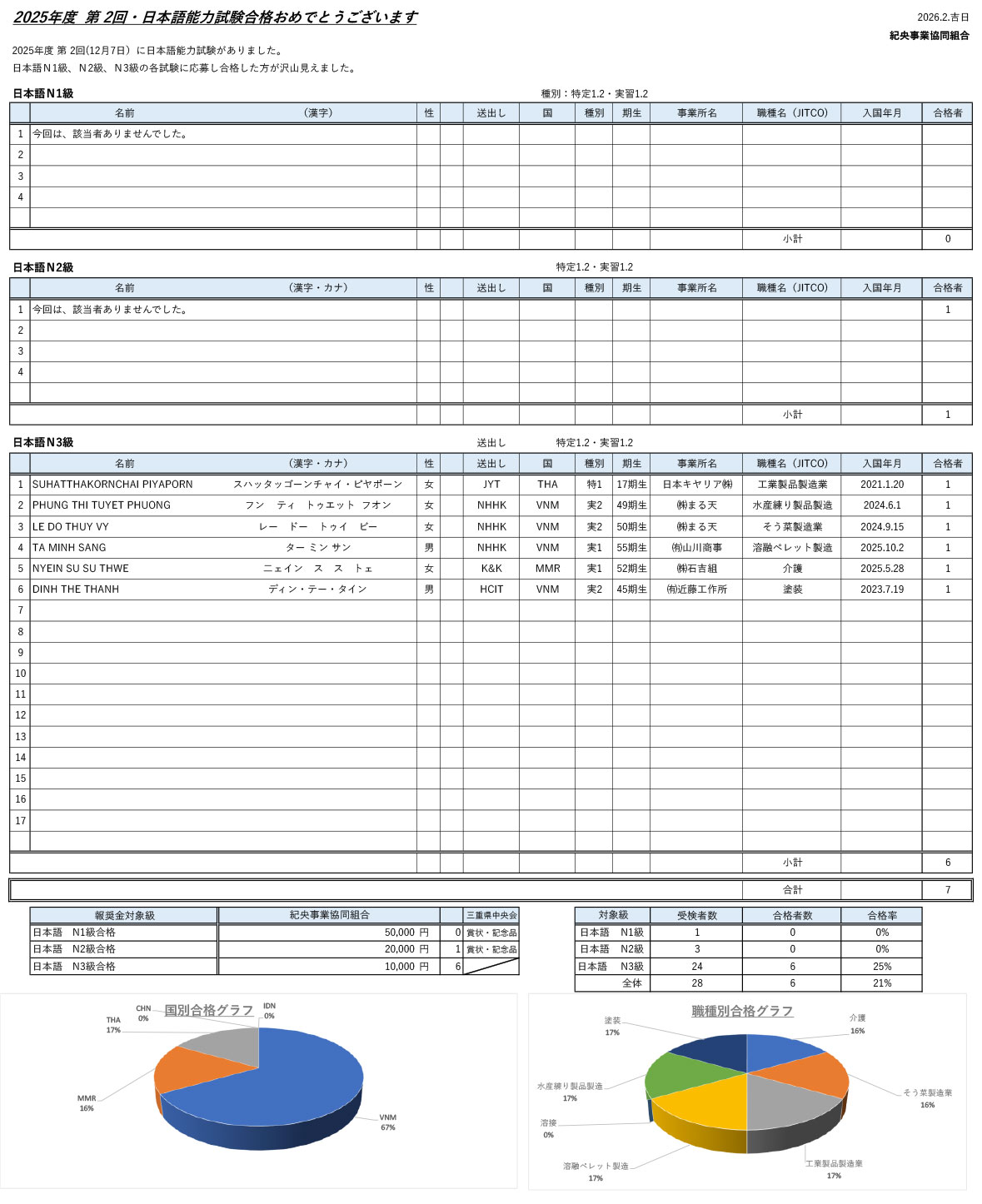 日本語試験おめでとうございます。(2025年度第2回)